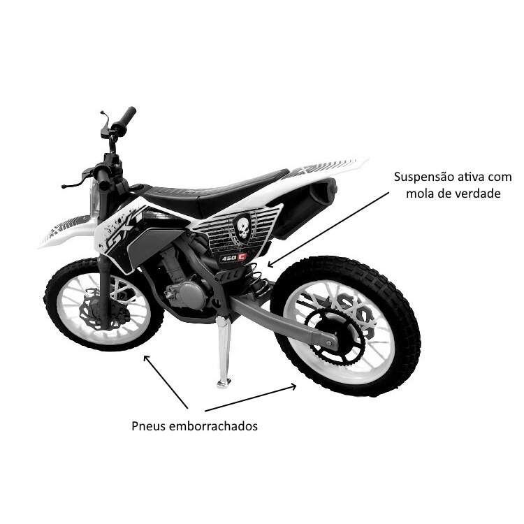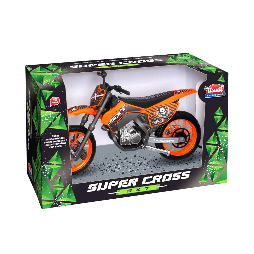 Moto de Brinquedo Infantil Rally Realista Super Cross SXT Suspensão Cor Sortida Moto de Brinquedo Infantil Rally Realista Super Cross SXT Suspensão Cor Sortida 0 avaliações | Dê a sua avaliação! Referência: 346 Modelo/Marca: Brinquedo Moto Super Cross SXT Sortido/Usual Brinquedos R$ 38,98 ou 3x de R$ 13,59 sem juros ou em até 8x de R$ 5,95 no cartão Comprar Indicar este produto Deixar um comentário Boleto Bancário Parcelas 1x de R$ 40,78sem juros 2x de R$ 20,39sem juros 3x de R$ 13,59sem juros 4x de R$ 11,35 5x de R$ 9,32 6x de R$ 7,77 7x de R$ 6,80 8x de R$ 5,95 Brinquedo Moto Super Cross SXT Cores SortidasEssa linda Moto Super Cross era tudo que os apaixonados por moto cross queriam. A moto conta com pneus de borracha e suspensão ativa com mola de verdade para as crianças poderem brincar e se divertir. É fabricada com materiais de qualidade e tem um excelente acabamento. Pode ser usada para brincar ou como decoração de ambiente.Enviado em cores sortidas, o produto é fabricado nas cores: Laranja, Verde, Azul, Roxo e BrancoEspecificações:Marca: Usual BrinquedosModelo: Moto Super Cross SXTCor: Sortida (mediante disponibilidade de estoque)Referência: 602Tamanho: Dimensões nas fotosIdade Recomendada: A partir de 3 anosComposição: PP (Polipropileno ? Plástico) e açoCertificado INMETRO: Compulsório Registro 0003070/2022Itens Inclusos:1x Moto Cross Sortida