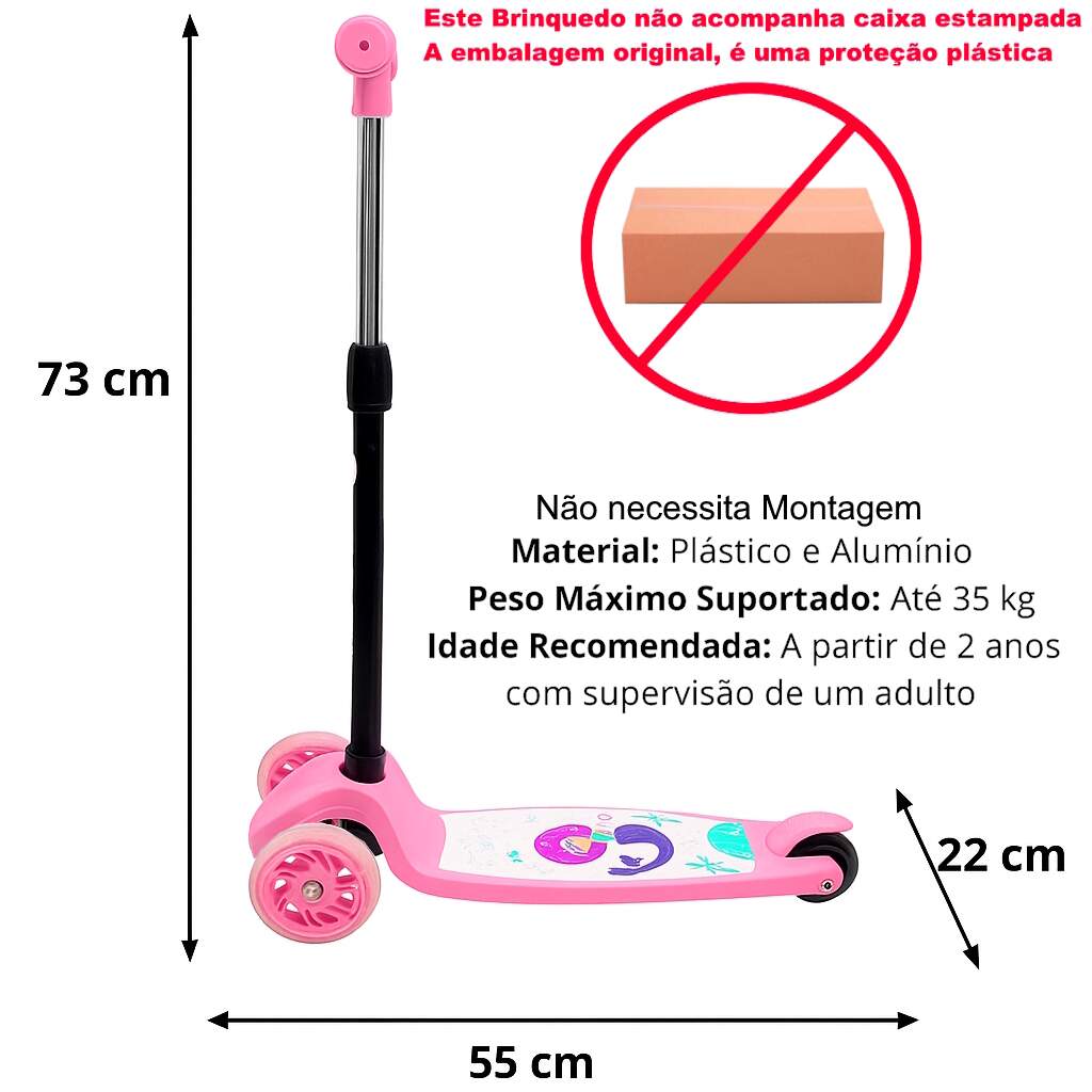 Patinete Infantil Meninas Sereia com Luzes 3 Rodas Rosa 0 avaliações | Dê a sua avaliação! Referência: GK3309rosa Modelo/Marca: Patinete Rosa Infantil com Luzes Regulagem de Altura e Freio com 3 Rodinhas/Goal Kids R$ 128,02 ou 3x de R$ 44,64 sem juros ou em até 12x de R$ 13,63 no cartão Comprar Indicar este produto Deixar um comentário Boleto Bancário Parcelas 1x de R$ 133,93sem juros 2x de R$ 66,97sem juros 3x de R$ 44,64sem juros 4x de R$ 37,29 5x de R$ 30,62 6x de R$ 25,52 7x de R$ 22,33 8x de R$ 19,54 9x de R$ 17,81 10x de R$ 16,16 11x de R$ 14,69 12x de R$ 13,63 Patinete Rosa Infantil com Luzes Regulagem de Altura e Freio com 3 RodinhasO Patinete Rosa Infantil com Luzes é a escolha ideal para garantir diversão com segurança para as crianças. Com 3 rodinhas, oferece excelente estabilidade, sendo perfeito para iniciantes. O guidão possui regulagem de altura, se ajustando ao crescimento da criança e proporcionando conforto durante o uso. As rodas emitem luzes coloridas ao girar, tornando a brincadeira ainda mais divertida e chamativa. Conta também com freio traseiro, garantindo mais segurança nos passeios. Leve, resistente e fácil de manusear, é ideal para atividades ao ar livre, ajudando no desenvolvimento do equilíbrio, coordenação motora e autonomia dos pequenos.Vídeo de demonstração no anúncio ou em nossas redes e canais Flix Mobile / Flix M / flixm.oficialInformações Importantes:1 - Esse brinquedo já vai montado, só abrir travar e usar2 - Esse Brinquedo não acompanha caixa ou embalagem com estampa, a embalagem original dele é uma proteção PlásticaCaracterísticas:Marca: Goal KidsReferência: GK-3309Tamanho: 60 a 78cm de altura x 54cm de Comprimento x 22cm de LarguraIdade Recomendada: A partir de 3 a 10 anosComposição do Material: Plástico com Estrutura Metálica e SiliconeLimite de Peso: Até 35kgCor: RosaCertificado INMETRO: 001658/2024Conteúdo do Pacote:1x Patinete Divertido