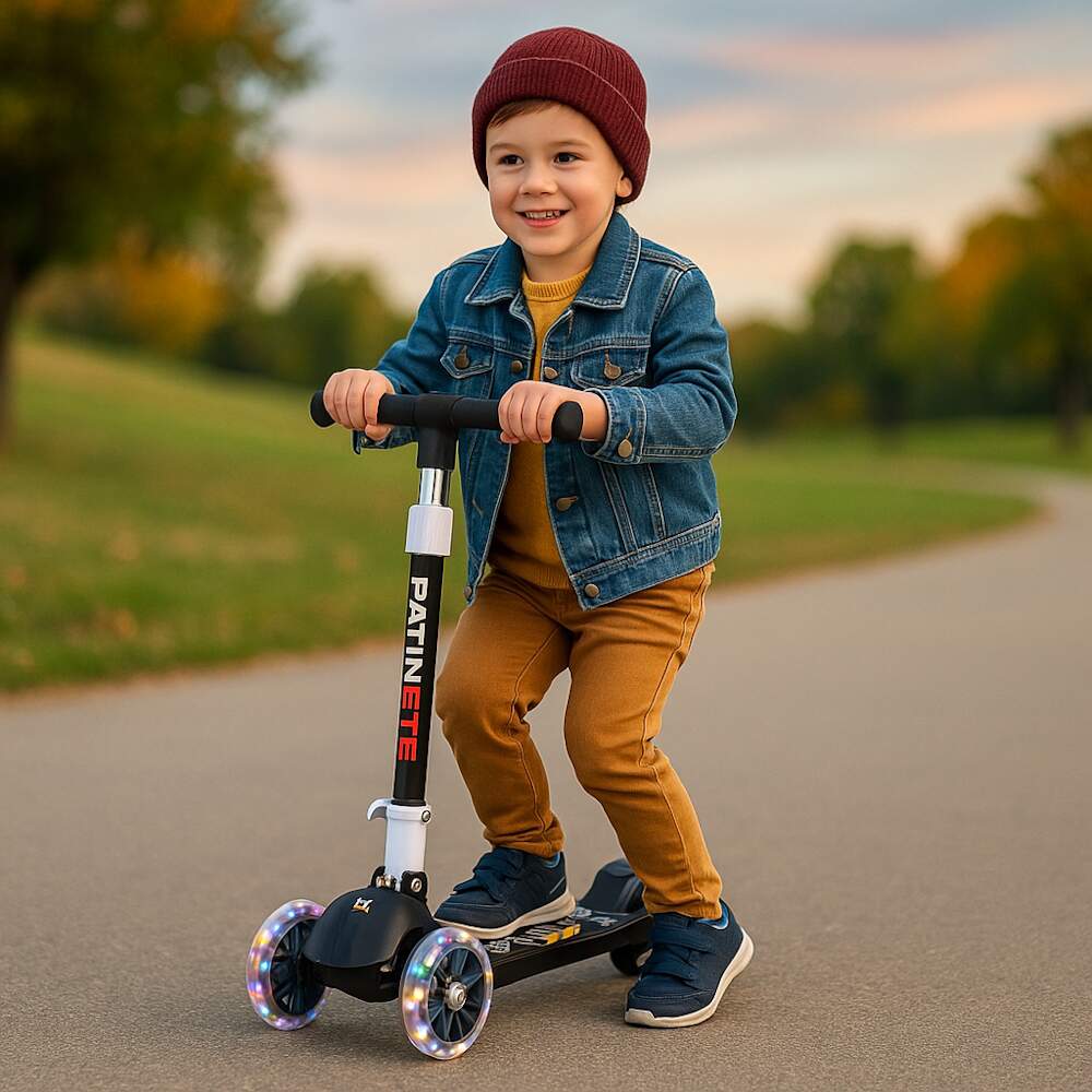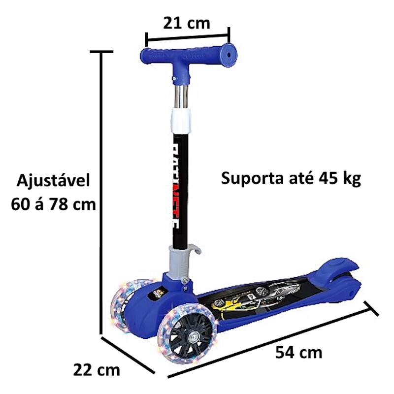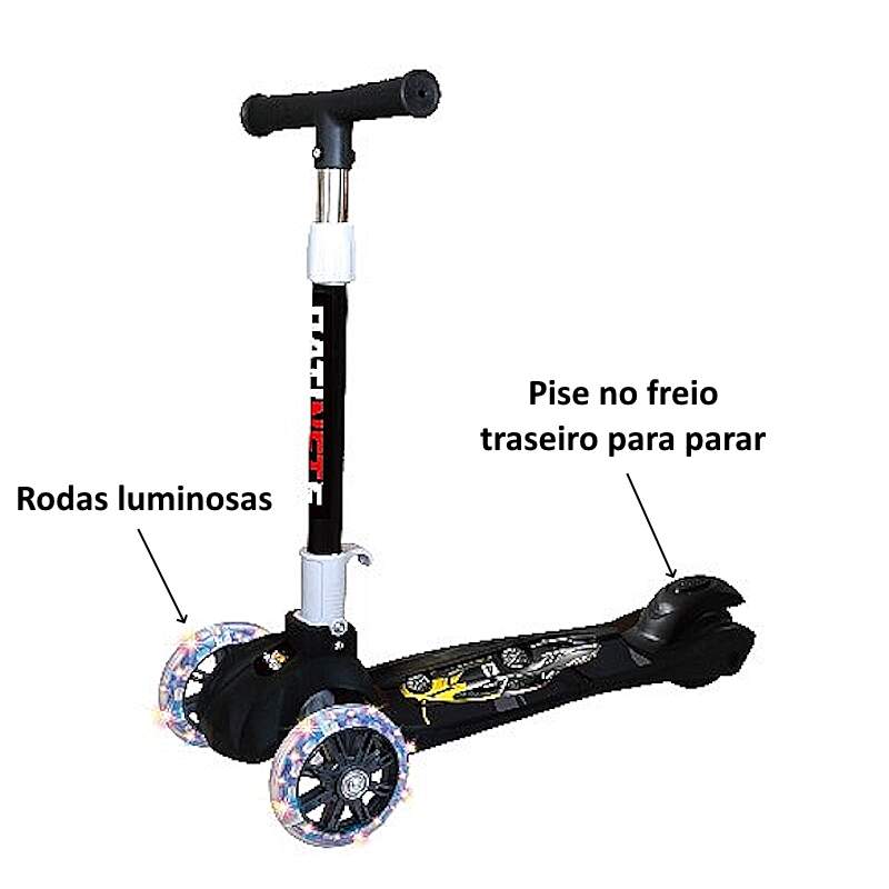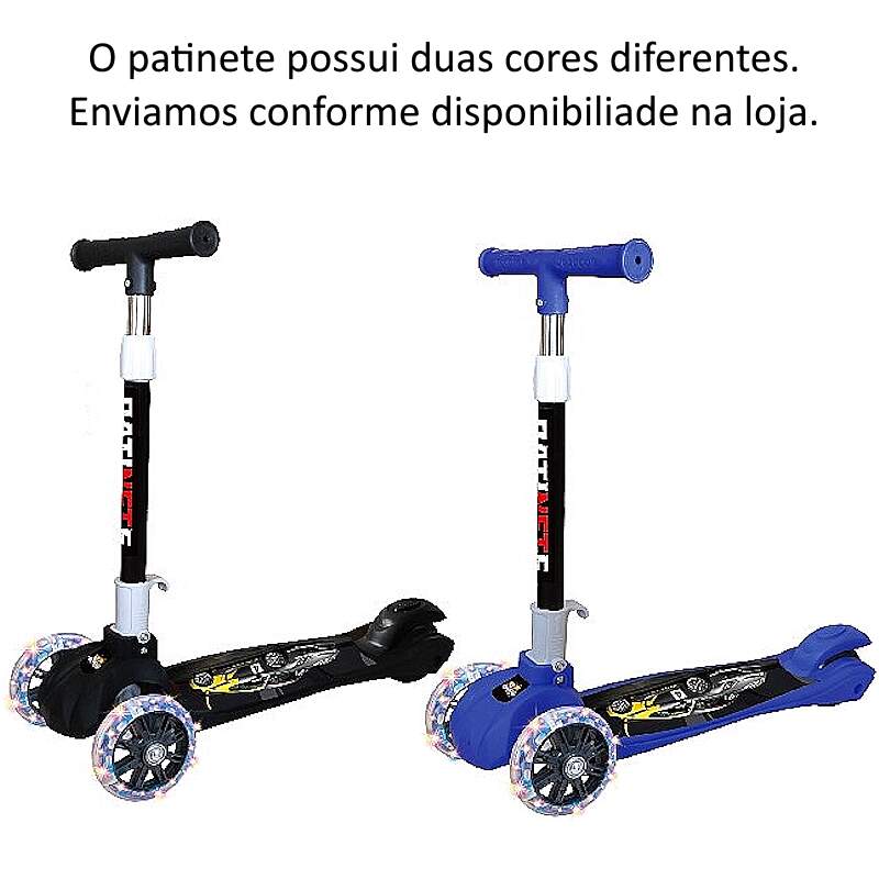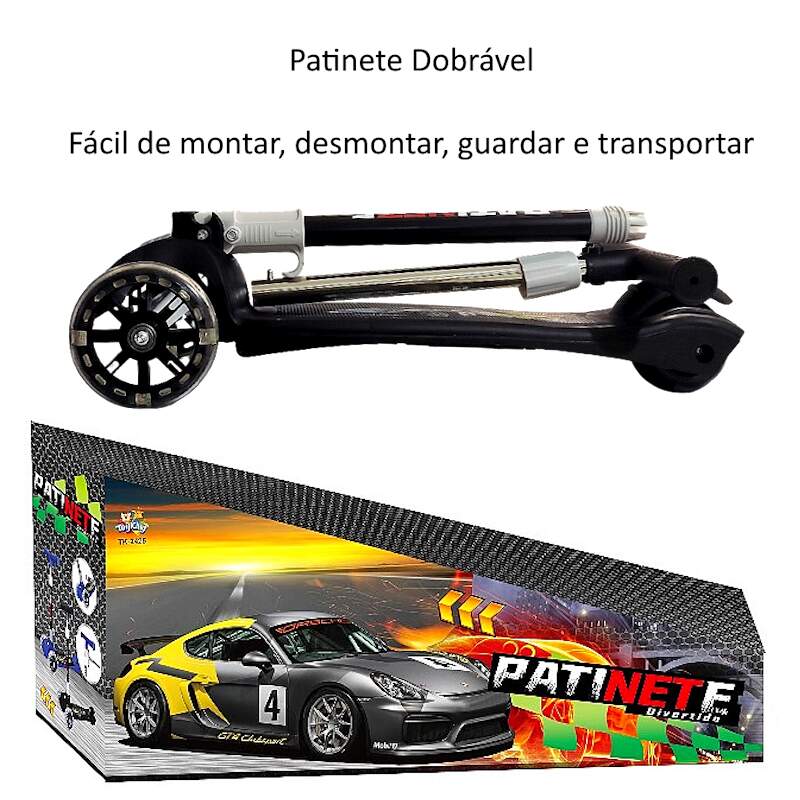 Patinete Super Scooter Carros 3 Rodinhas Reforçado com Luz 0 avaliações | Dê a sua avaliação! Referência: TK2425 Modelo/Marca: Patinete Infantil com Luzes Regulagem de Altura e Freio com 3 Rodinhas/Toy King R$ 167,92 ou 3x de R$ 58,56 sem juros ou em até 12x de R$ 17,88 no cartão Comprar Indicar este produto Deixar um comentário Boleto Bancário Parcelas 1x de R$ 175,68sem juros 2x de R$ 87,84sem juros 3x de R$ 58,56sem juros 4x de R$ 48,91 5x de R$ 40,16 6x de R$ 33,47 7x de R$ 29,29 8x de R$ 25,63 9x de R$ 23,36 10x de R$ 21,20 11x de R$ 19,27 12x de R$ 17,88 Patinete Infantil com Luzes Regulagem de Altura e Freio com 3 RodinhasO Patinete Divertido, além de ser seguro, estimula a coordenação motora e o senso de equilíbrio das crianças. Possui ajuste de altura, freio traseiro e luzes nas 3 rodinhas quando se movimenta. É muito fácil montar, desmontar, transportar e guardar. É fabricado em metal super resistente com toda segurança do certificado INMETRO. Ótima opção de presente criativo e divertido, as crianças vão adorar!Características:Marca: Toy KingReferência: TK-2425Tamanho: 60 a 78cm de altura x 54cm de Comprimento x 22cm de LarguraIdade Recomendada: A partir de 2 anosMaterial: Metal e SiliconeLimite de Peso: Até 45kgCor: Azul ou Preto. Enviamos conforme disponibilidade na loja. Não é possível escolher a cor do brinquedoCertificado INMETRO: 005588/2021Conteúdo do Pacote:1x Patinete Divertido