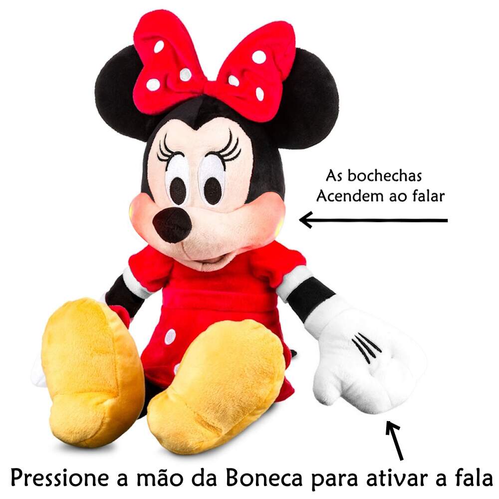 Pelúcia Minnie de 45cm Vermelha Falas e Luzes na bochecha em português Multikis Original
