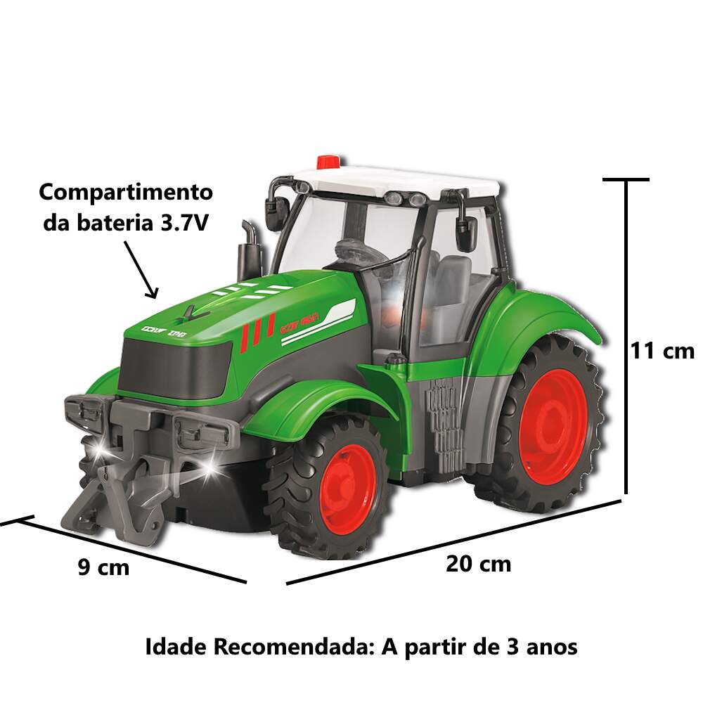 Trator Agrícola de Controle Remoto com Luzes Recarregável 0 avaliações | Dê a sua avaliação! Referência: TKAB6998 Modelo/Marca: Trator de Controle Remoto Agrícola de Brinquedo Bateria Recarregável com Luzes Pneus de Borracha /Toy King R$ 88,57 ou 3x de R$ 30,89 sem juros ou em até 12x de R$ 9,43 no cartão Comprar Indicar este produto Deixar um comentário Boleto Bancário Parcelas 1x de R$ 92,66sem juros 2x de R$ 46,33sem juros 3x de R$ 30,89sem juros 4x de R$ 25,80 5x de R$ 21,18 6x de R$ 17,66 7x de R$ 15,45 8x de R$ 13,52 9x de R$ 12,32 10x de R$ 11,18 11x de R$ 10,16 12x de R$ 9,43 Trator de Controle Remoto Recarregável Infantil Agrícola Realista com Pneus Emborrachados e LuzesDiversão garantida no campo e na cidade! Este trator agrícola de controle remoto possui pneus emborrachados, luz nos faróis e bateria recarregável inclusa, oferecendo realismo e praticidade. Fácil de controlar, estimula a coordenação motora e a imaginação das crianças. Ideal para brincadeiras criativas dentro e fora de casa.Um brinquedo resistente, moderno e cheio de detalhes que tornam a experiência ainda mais realista. Presente perfeito para quem ama máquinas agrícolas!Características:Marca: Toy KingModelo: Trator Agrícola R/CIdade Recomendada: A partir 3 anosMaterial: Plástico com pneus emborrachadosCertificado ANATEL: 06982-24-12881Certificado INMETRO: 009145/2022Conteúdo da embalagem:1x Trator Agrícola1x Controle Remotto1x Bateria 3.7V Recarregável1x Carregador USB da bateria