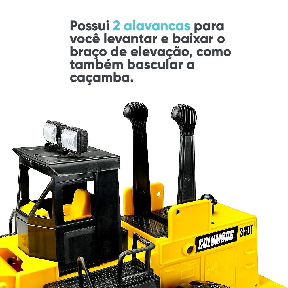 Trator Gigante Pá Carregadeira Columbus 51cm com Alavancas Roma Trator Gigante Pá Carregadeira Columbus 51cm com Alavancas Roma 0 avaliações | Dê a sua avaliação! Referência: RO330 Modelo/Marca: Trator Pá Carregadeira Grande de Brinquedo Articulado Columbus/ROMA R$ 109,50 ou 3x de R$ 38,19 sem juros ou em até 12x de R$ 11,66 no cartão Comprar Indicar este produto Deixar um comentário Boleto Bancário Parcelas 1x de R$ 114,56sem juros 2x de R$ 57,28sem juros 3x de R$ 38,19sem juros 4x de R$ 31,89 5x de R$ 26,19 6x de R$ 21,83 7x de R$ 19,10 8x de R$ 16,72 9x de R$ 15,24 10x de R$ 13,82 11x de R$ 12,57 12x de R$ 11,66 Trator Pá Carregadeira Grande de Brinquedo de Construção Articulado ColumbusVocê pode brincar na praia ou na piscina, pois a Carregadeira Columbus não tem partes metálicas e não enferruja! Possui duas alavancas para você levantar e abaixar o braço de elevação como também bascular a caçamba. A alavanca da direita faz o braço de elevação levantar e abaixar e a alavanca da esquerda faz a caçamba bascular. Você vai operar uma super carregadeira.Características:Marca: Roma BrinquedosReferência: 0330Idade Recomendada: A partir de 3 anosTamanho (aprox.) 51 x 20 x 26 cm (C x L x A)Composição (material): Polipropileno, PolietilenoCertificado INMETRO: Compulsório 000622/2021 - OCP 0006Conteúdo da Embalagem:1x Carregadeira Columbus