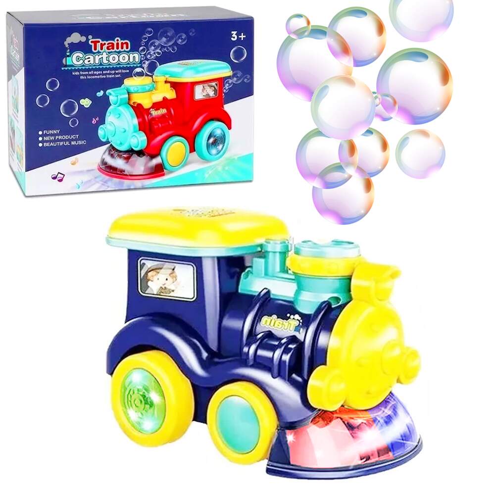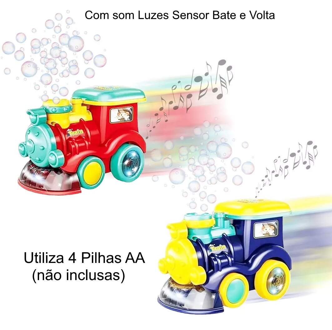 Trem de Brinquedo que Solta Bolhas de Sabão com Som e Luzes Bate e Volta