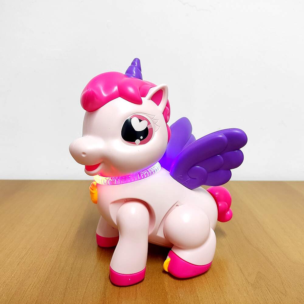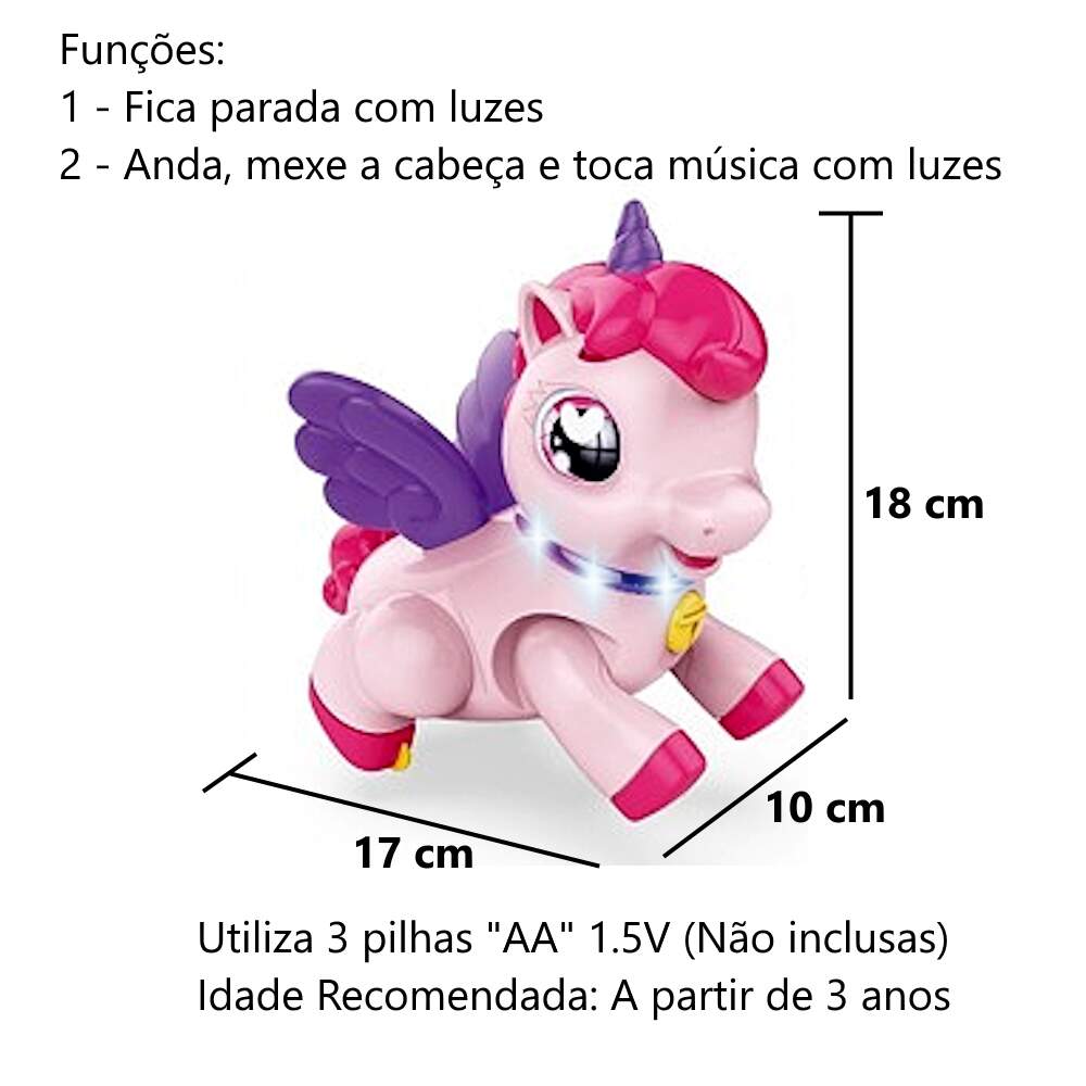 Unicórnio do Sonho Brinquedo Musical Com Asas e Luzes Poney 0 avaliações | Dê a sua avaliação! Referência: TKAB8288 Modelo/Marca: Unicórnio de Brinquedo Que Toca Música Anda com Som e Luzes Ponei Pegasus Eletrônico/Toy King R$ 57,96 ou 3x de R$ 20,21 sem juros ou em até 12x de R$ 6,17 no cartão Comprar Indicar este produto Deixar um comentário Boleto Bancário Parcelas 1x de R$ 60,64sem juros 2x de R$ 30,32sem juros 3x de R$ 20,21sem juros 4x de R$ 16,88 5x de R$ 13,86 6x de R$ 11,55 7x de R$ 10,11 8x de R$ 8,85 9x de R$ 8,06 10x de R$ 7,32 11x de R$ 6,65 12x de R$ 6,17 Unicórnio de Brinquedo Que Toca Música Anda com Som e Luzes Ponei Pegasus EletrônicoUm Unicórnio Divertido Com Luzes e Sons Dreamy Unicorn é um brinquedo mágico que combina a beleza mística de um unicórnio com elementos interativos de luzes e sons. Este brinquedo é projetado para encantar e estimular a imaginação das crianças, oferecendo uma experiência lúdica e sensorial. Dreamy Unicorn apresenta luzes que piscam em padrões coloridos, emite sons suaves e melodias alegres, criando uma atmosfera de fantasia e diversão. Ideal para abraçar e brincar, este unicórnio se torna um companheiro mágico para os pequenos, incentivando a criatividade e proporcionando momentos de alegria.Vídeo de demonstração no anúncio ou em nossas redes e canais Flix Mobile / Flix.Mobile / @flixm.oficialCaracterísticas:Marca: Toy KingModelo: Dreamy UnicornReferência: TK-AB8288Cor: Rosa ou Branco (enviaremos a cor que estiver disponível no estoque)Tamanho: 15 x 14 x 18 cm (C x L x A)Idade Recomendada: A partir de 3 anosAlimentação Eletrônica: 3 pilhas "AA" 1.5V (Não Inclusas)Certificado INMETRO: Compulsório 004 163/2021Conteúdo da Embalagem:1x Dreamy Unicorn