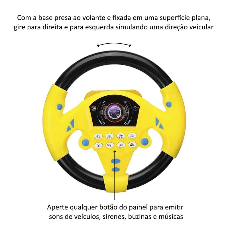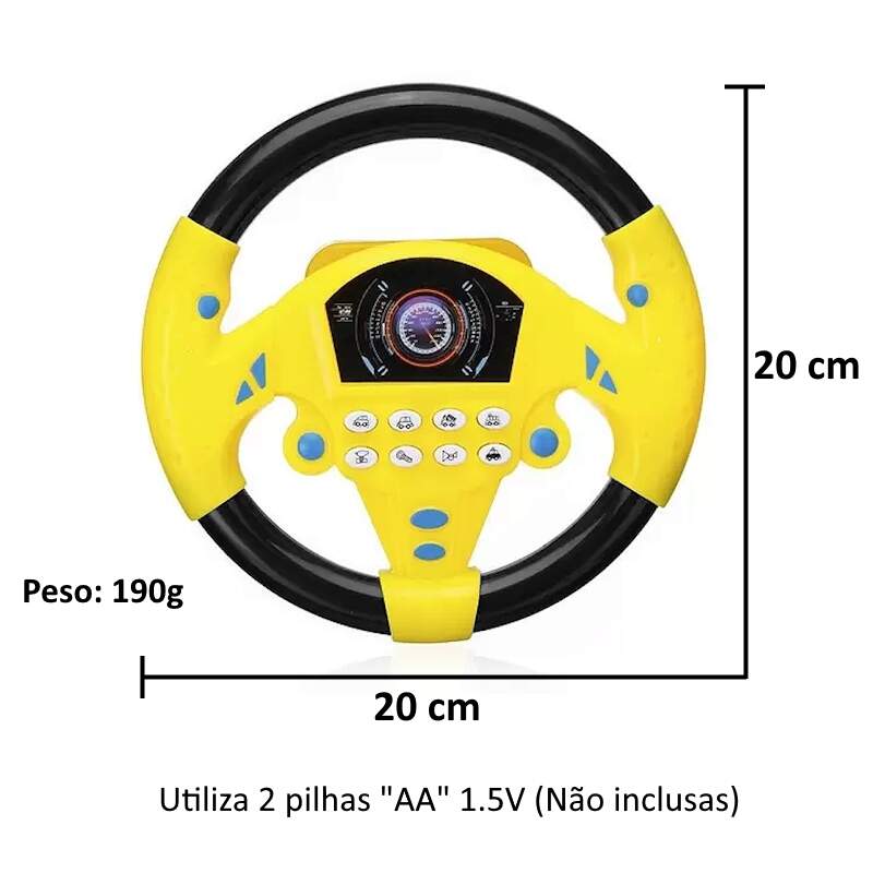 Volante Divertido Direção Animada com Buzina Sirenes Musicas Volante Divertido Direção Animada com Buzina Sirenes Musicas 0 avaliações | Dê a sua avaliação! Referência: TKAB3156 Modelo/Marca: Volante Musical Infantil com Sons de Veículos e Sirenes/Toyng R$ 33,84 ou 3x de R$ 11,80 sem juros ou em até 7x de R$ 5,90 no cartão Comprar Indicar este produto Deixar um comentário Boleto Bancário Parcelas 1x de R$ 35,40sem juros 2x de R$ 17,70sem juros 3x de R$ 11,80sem juros 4x de R$ 9,86 5x de R$ 8,09 6x de R$ 6,75 7x de R$ 5,90 Volante Musical Infantil com Sons de Veículos Som de Motor Partida Buzina Policia Freio AmbulânciaO Volante Musical é um brinquedo interativo e educativo. Auxilia na coordenação, audição e desenvolvimento lógico da criança ou bebê. Possui sons suaves que não prejudicam a audição. O volante vira simulando uma direção veicular, basta apoiá-lo em uma superfície fixa. Tem músicas, sons de sirenes, buzinas e sons de veículos.Especificações:Marca: Toy KingModelo: Volante Com Direção Simulada e Efeitos SonorosReferência: TK-1663Tamanho: 20 cm de Comprimento x 20 cm de LarguraIdade Recomendada: A partir de 3 anosCertificado INMETRO: 007 526/2022Itens Inclusos:1 x Volante com Sons1x Base com ventosa